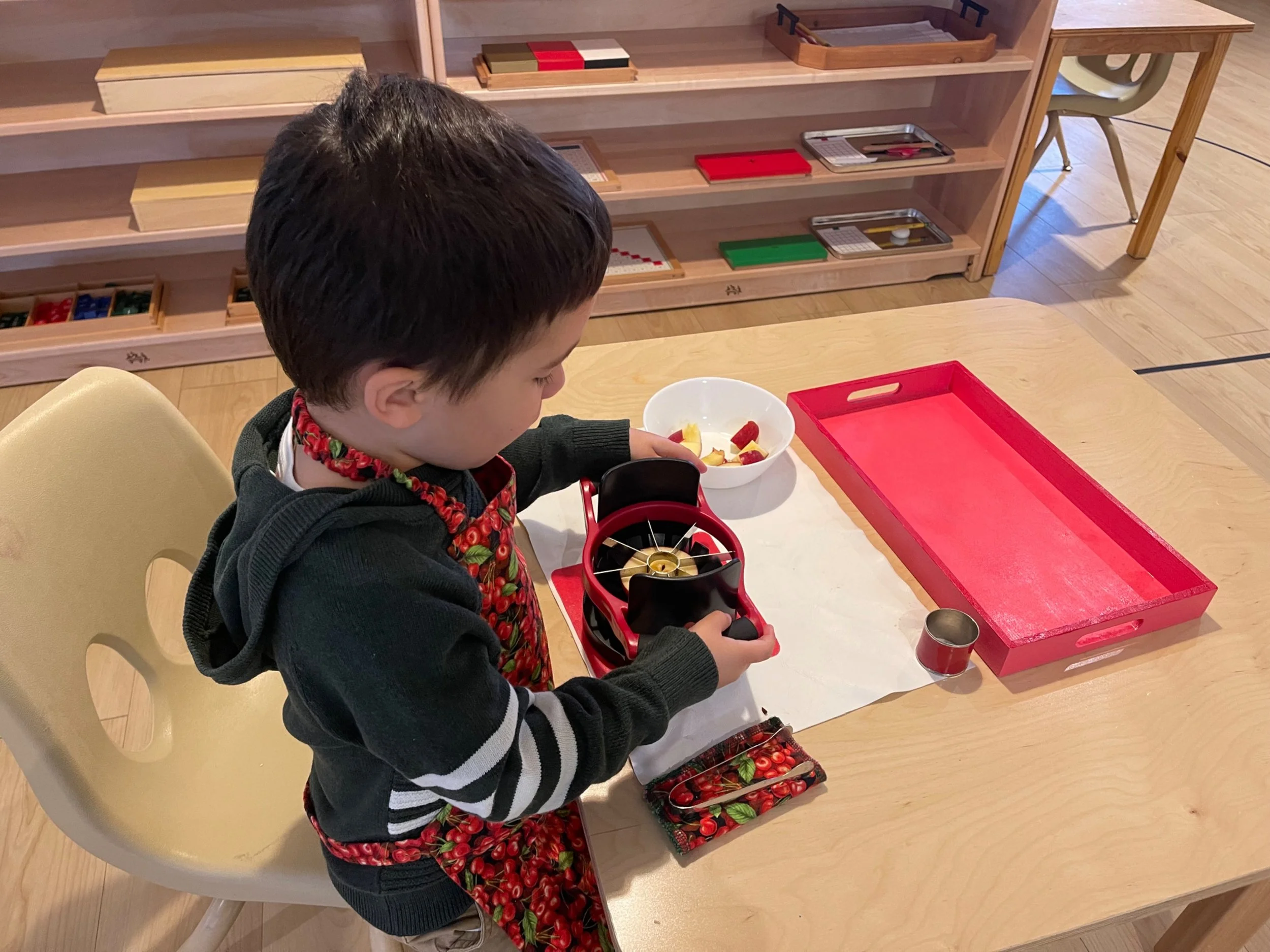 Instead of playing with a toy kitchen, children prepare snacks and meals with appropriate kitchen tools. Rather than reading or listening to a story with talking animals, they would be presented with stories about real animals or people. This approach helps the child become independent and capable in the real world around them.